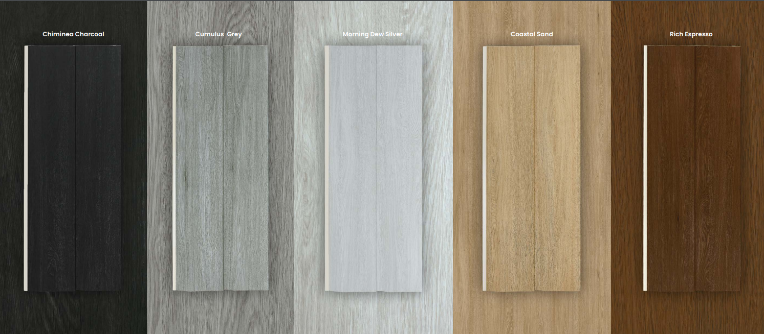 Available in 5 contemporary wood tones: NatureClad’s colour palette ranges from cool, modern greys to natural, warm hues. These textured timber finishes complement both contemporary and traditional builds. What’s more, no batch matching is required to ensure consistency in colour and texture between cladding boards, joints and trims.